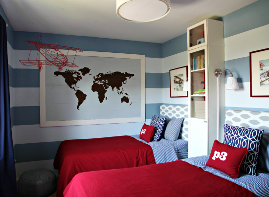I also had a little encouragement from my good friend that got me into Annie Sloan paint. She painted the same type of stripes I planned to do in her son’s room, and was super happy with them – and I think they look awesome too! I think I’ve told you about her before, but she is particular like me – so I knew messy and crooked stripes would never do for her. More on her suggestions and how I went about my project to come,but first a little more inspiration…